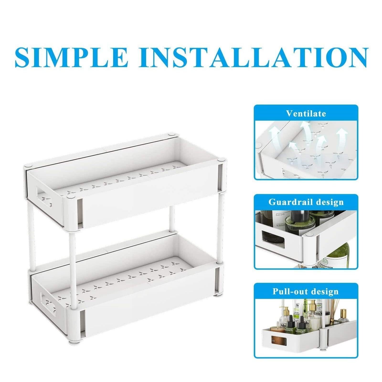 Multi-Functional Under Sink Organizer: This upgraded sliding bathroom organizer can be easily placed under almost all sinks or on any countertop in the kitchen, bathroom or dresser,which can meet the storage needs of most items.Can be used as under sink organizers, bathroom storage, cosmetic storage, etc.Wisdom Star bathroom sink shelf basket improves space utilization for your house perfectly