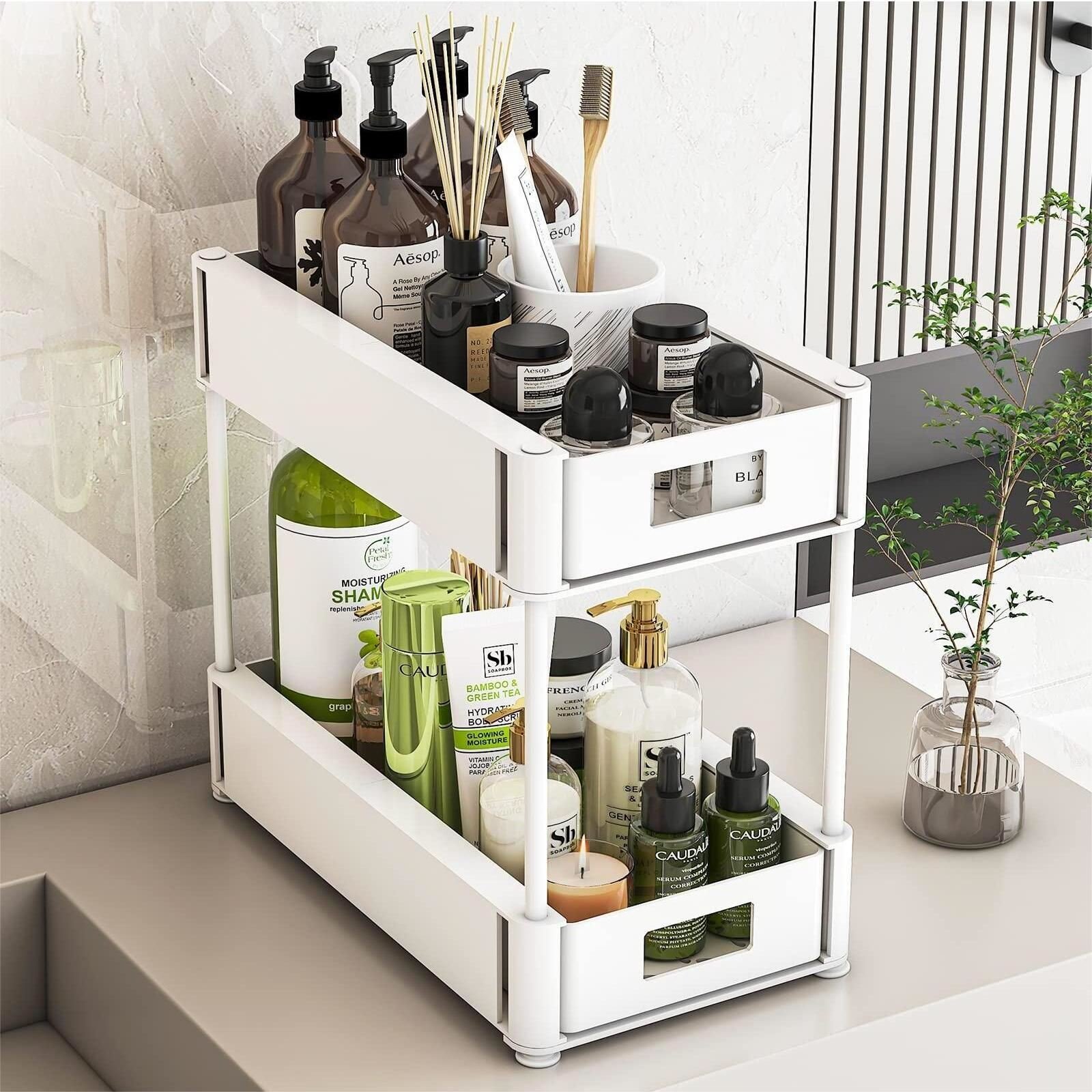 Home > 2 sets sink storage units and bathroom sink storage units, 2-layer drawer cabinet storage unit for kitchen bathroom sink storage, white