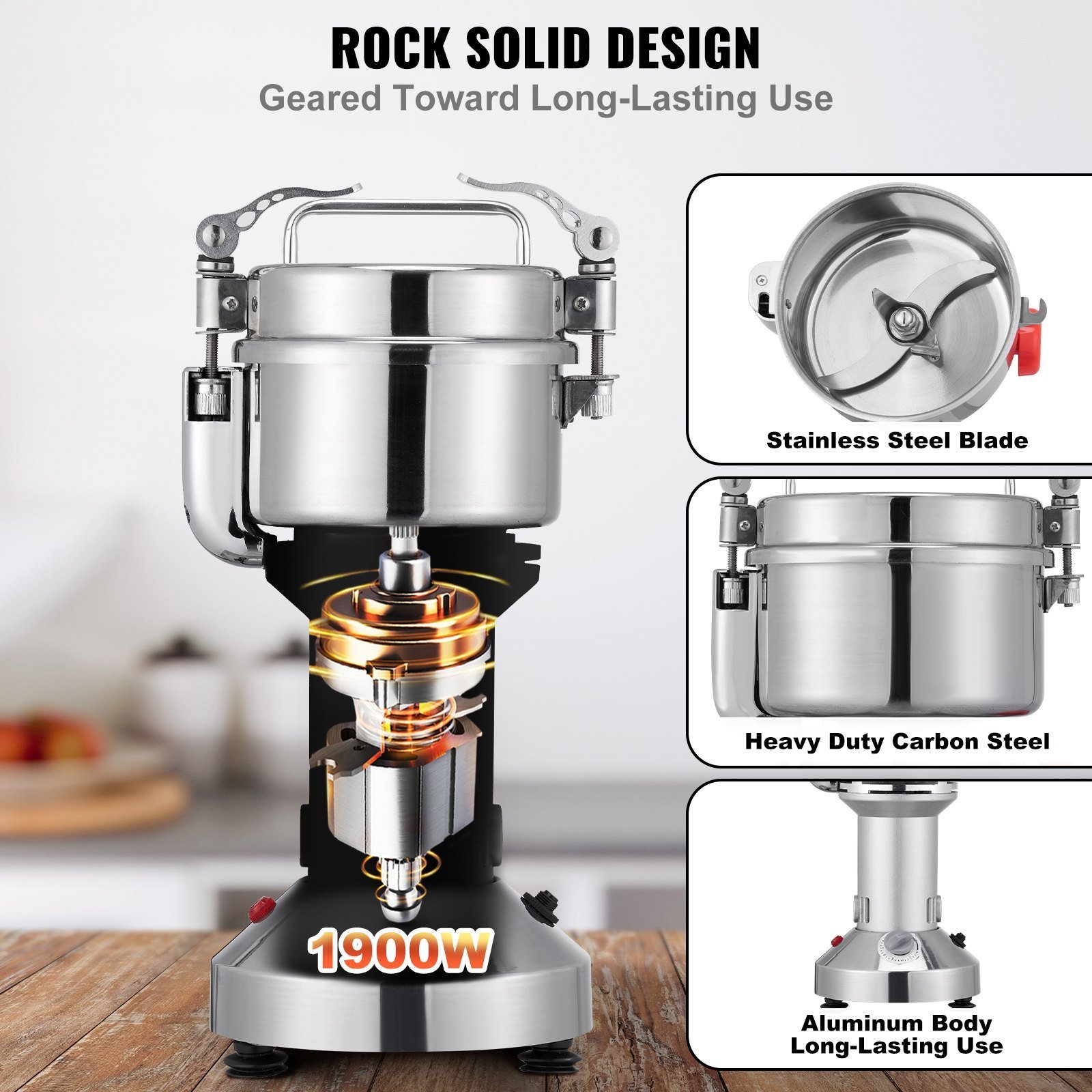 Home > VEVOR 300g Electric Grain Mill Grinder, High Speed 1900W Commercial Spice Grinders, Stainless Steel Pulverizer Powder Machine, for Dry Herbs Grains Sp
